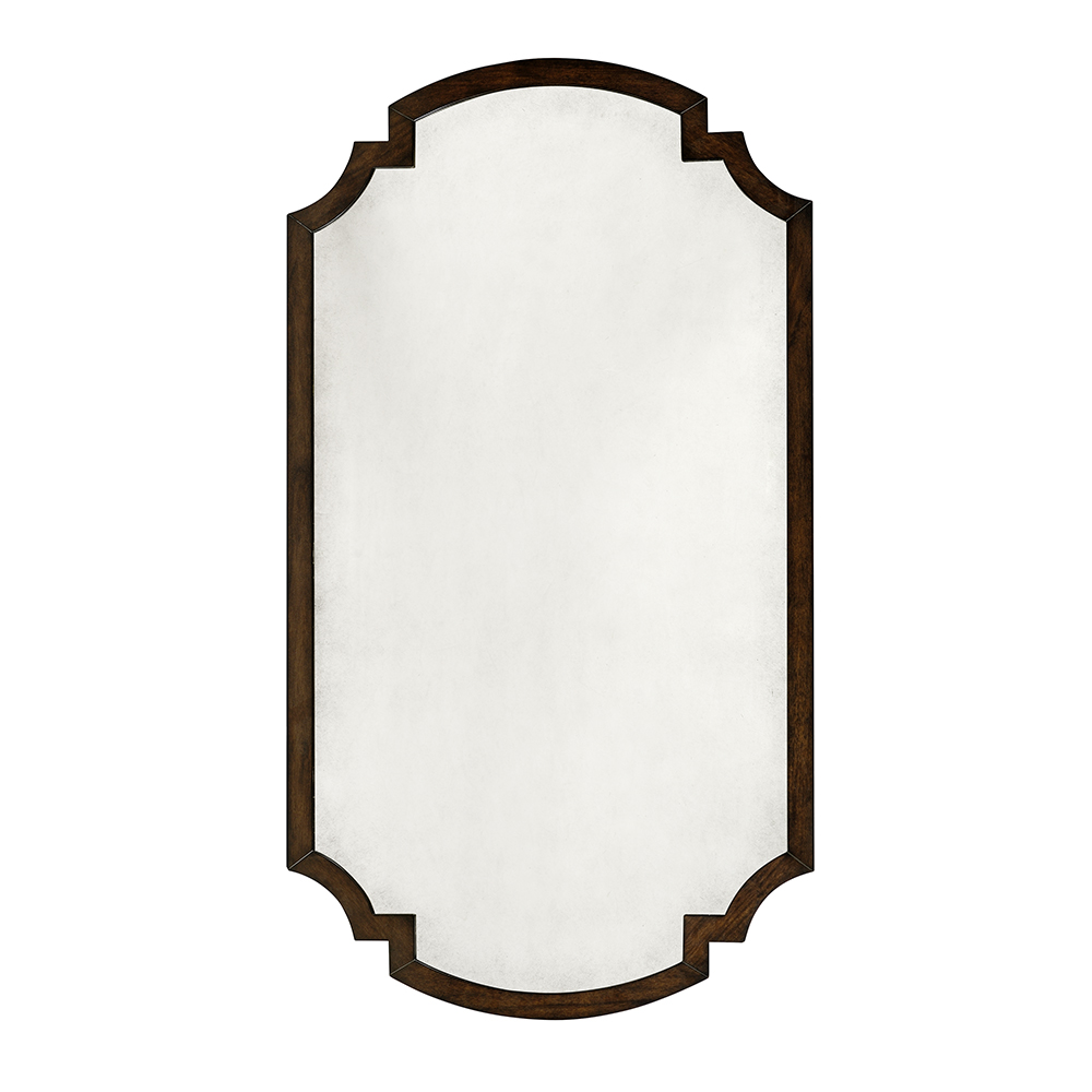 Our Anne Mirror features a shaped Queen Anne frame and a slightly antiqued glass mirror; Country finish on Acacia crown veneer and solids.