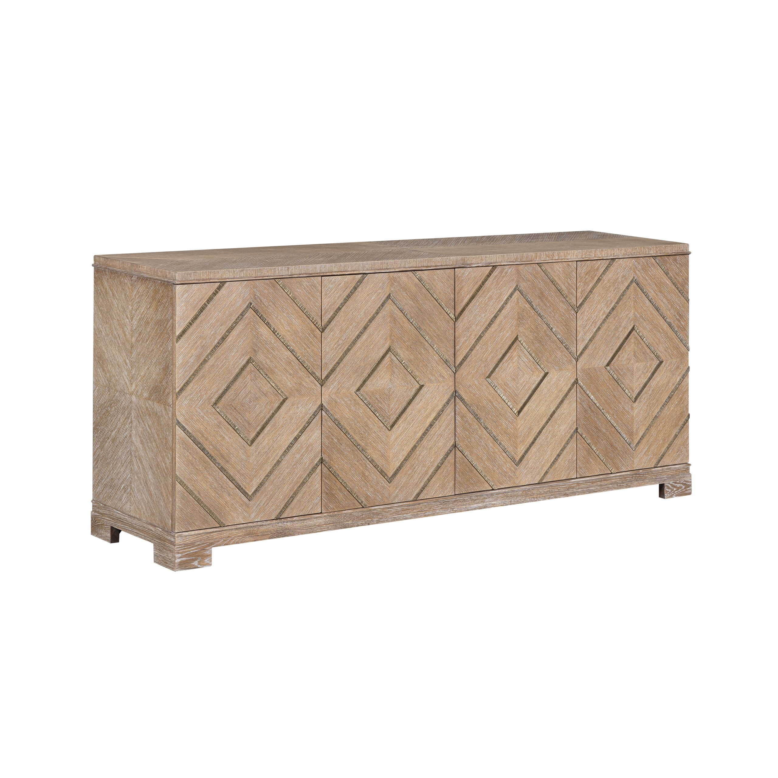 Bedford Sideboard (Metal Front Design) This Bedford Sideboard features a uniquely designed metal front accented by push/pull hardware and interior shelving, blending texture with modern sophistication.