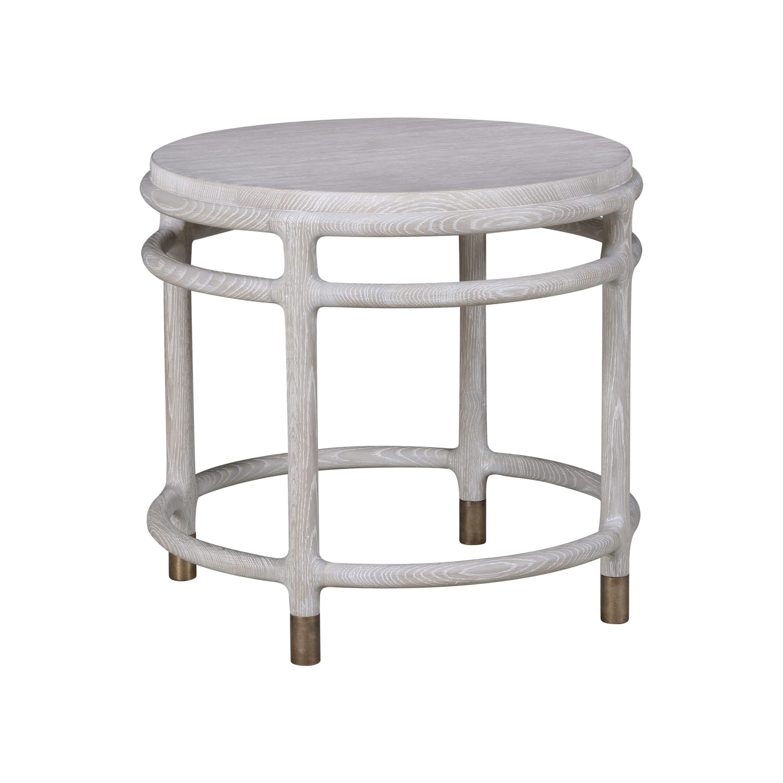 Cedar Key Side Table The Cedar Key Side Table features a smooth top and a uniquely shaped base accented with a refined brass ferrule.